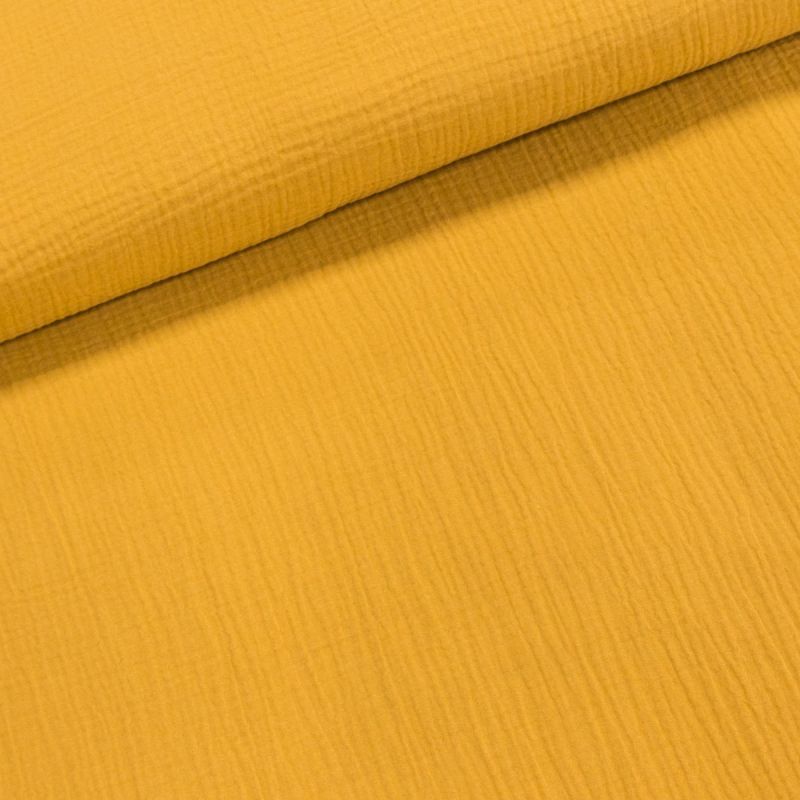 Látka fáčovina (gázovina) v jednobarevné hořčicové barvě. Látka je lehká vhodná na výrobu šatů, sukní, halenek, košilí, košilových šatů či lehkých kal...