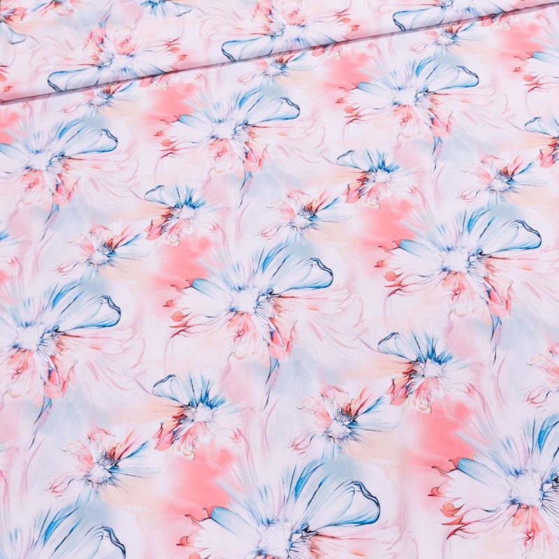 Šatovka polyesterová N6733, modré a růžové abstrakní květy, š.145cm (látka v metráži)