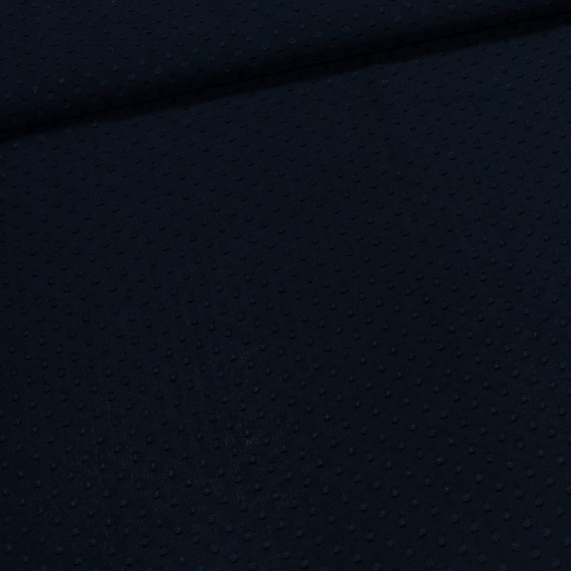 Šatovka polyesterová / šifon tmavě modrá, vytkávané puntíky, š.140cm (látka v metráži)