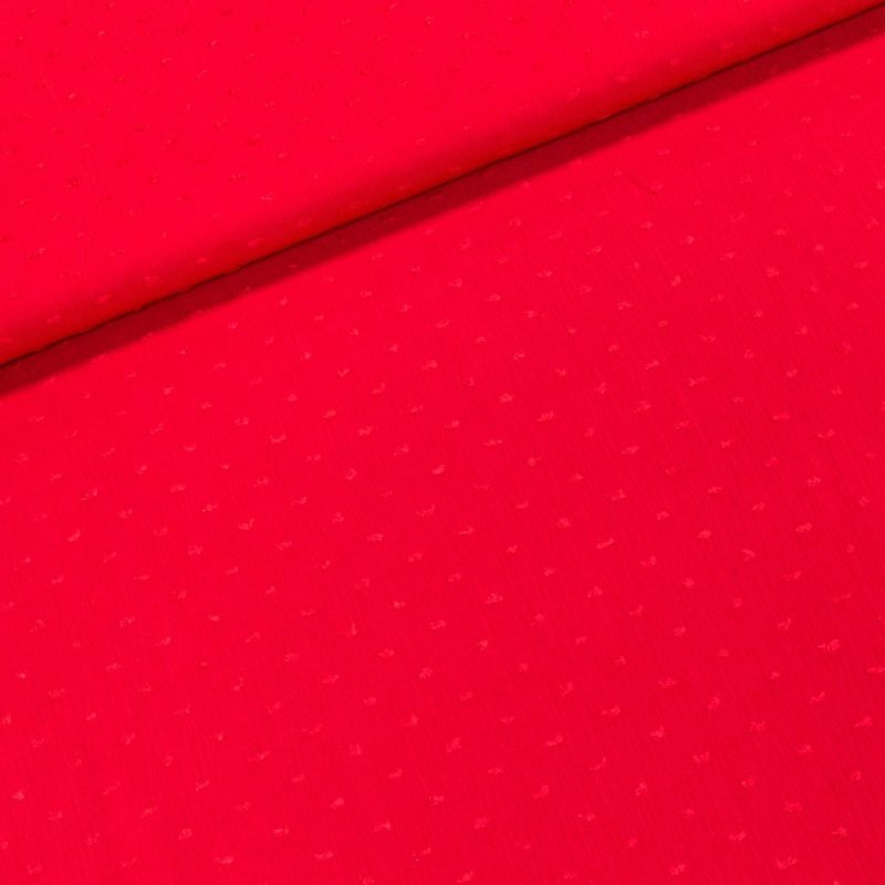 Viskózová látka (šatovka) se vzorem vystouplých nopků v červené barvě. Šatovka je v šířce 135 cm a je vyrobena ze 100% viskózy (gramáž 120g/m2) v kre...