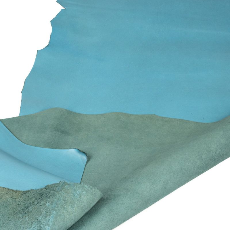 Pravá přírodní italská hovězí lícová kůže, tzv. hovězina v světle modré barvě. Tato středně měkká hovězí kůže se vyznačuje jemností, pružností a zárov...