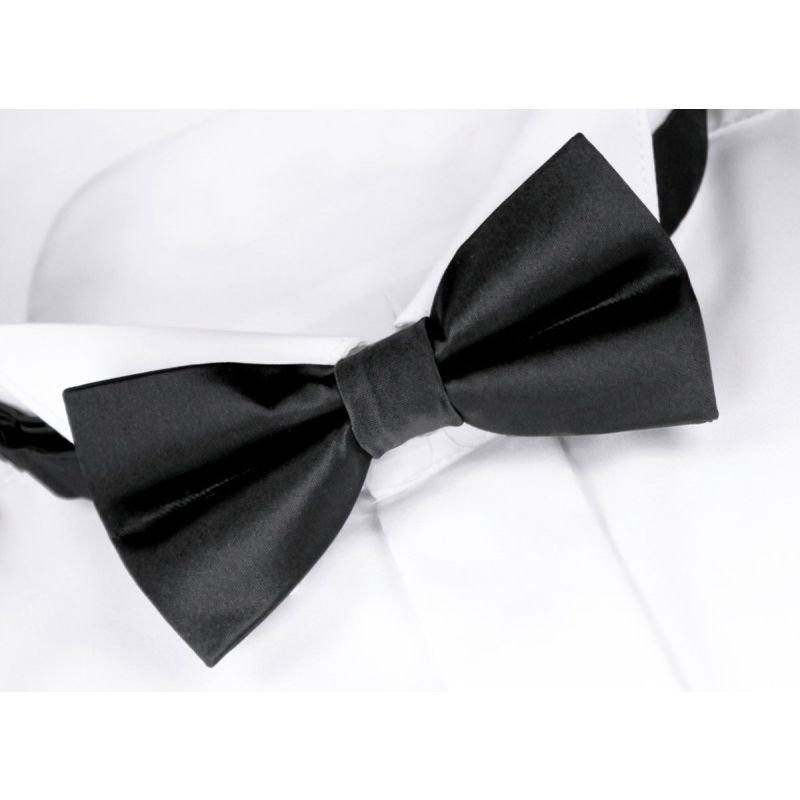 Elegantní, ručně šitý pánský motýlek v klasické černé barvě, vyrobený ze 100% polyesteru. Motýlek je již uvázaný, zapínání na sponu. Šířka motýlku v nejširším místě je 11,5cm a vysoký 5,5 cm v nejdelším místě. Díky své univerzální barvě je tento motýlek vhodný na taneční a jiné společenské události označené jako "Black Tie" nebo "Ultra Formal", kde je smoking nebo frak nutností.