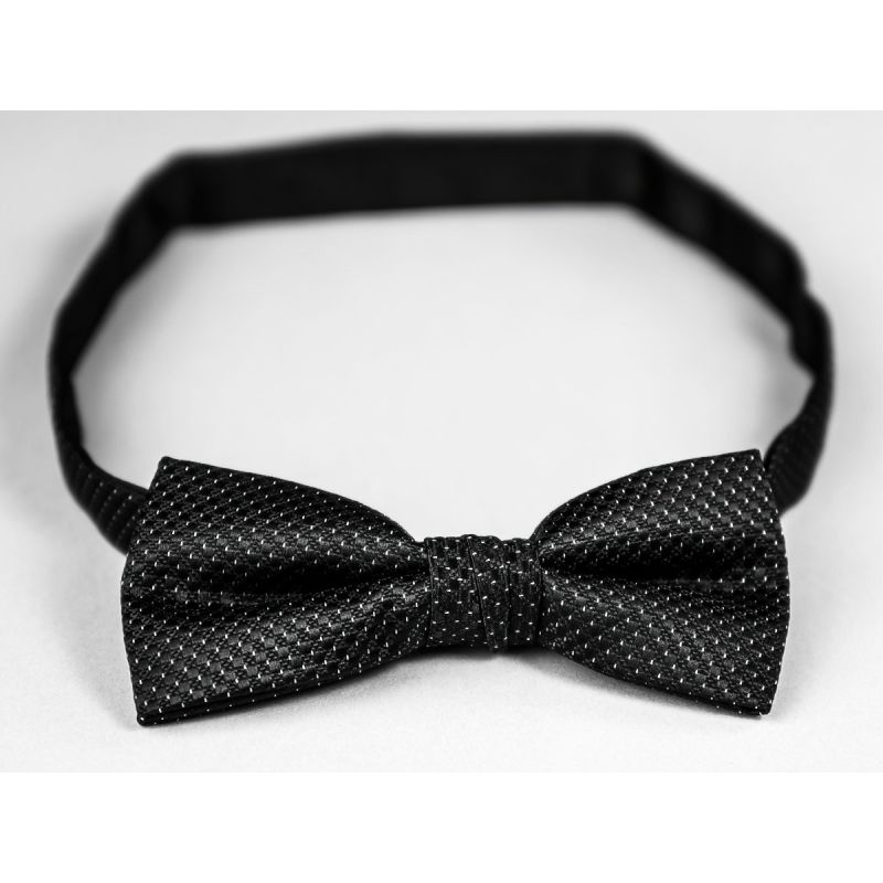Elegantní, ručně šitý pánský motýlek v černé barvě se stříbrným vzorem, vyrobený ze 100% polyesteru. Motýlek je již uvázaný, zapínání na sponu. Šířka motýlku v nejširším místě je 11,5cm a vysoký 5,5 cm v nejdelším místě. Tento motýlek je vhodný na taneční a jiné společenské události. Motýlek doporučujeme prát nanejvýš na 40°C.