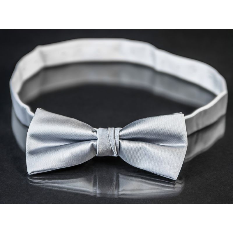 Elegantní, ručně šitý pánský motýlek stříbrné barvy, vyrobený ze 100% polyesteru. Motýlek je již uvázaný, zapínání na sponu. Šířka motýlku v nejširším místě je 11,5 cm a vysoký 5,5 cm v nejdelším místě. Díky své univerzální barvě je tento motýlek vhodný na taneční a jiné společenské události označené jako "Black Tie" nebo "Ultra Formal", kde je smoking nebo frak nutností.