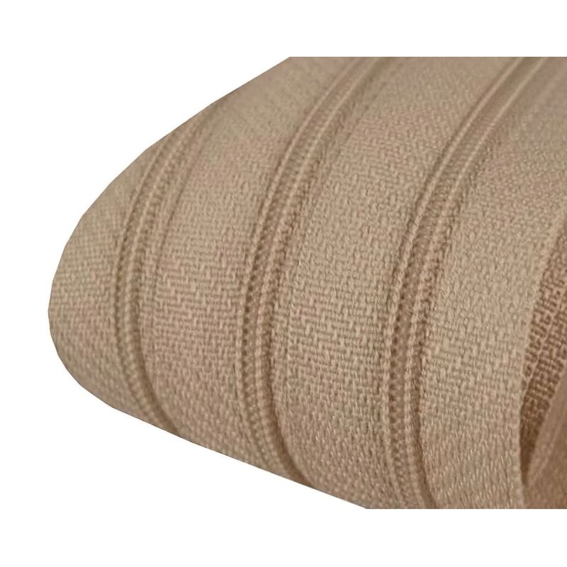 Nekonečný spirálový zip v hnědé přírodní barvě v metráži, je vhodný na oděvy, ale také na výrobu originálních zipových tašek nebo pouzder. Tkanina u z...