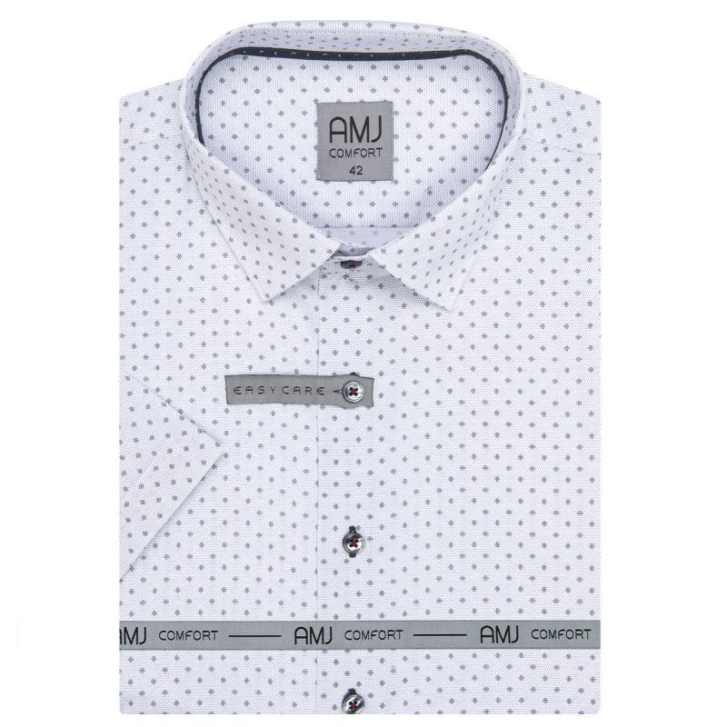 Pánská košile AMJ bavlněná, bílá s drobnými kytičkami VKBR1223, krátký rukáv, (regular + slim fit)