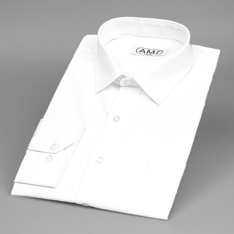 Pánská košile AMJ jednobarevná JD018, bílá, dlouhý rukáv