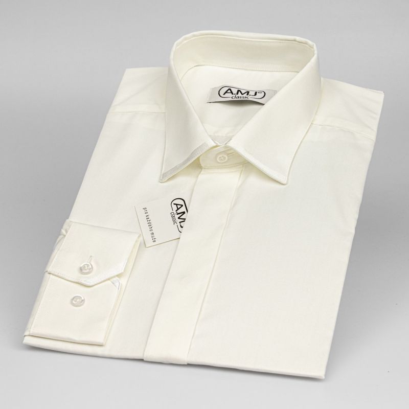Pánská luxusní košile AMJ smetanová JDA016SAT, dlouhý rukáv, zdobený límec