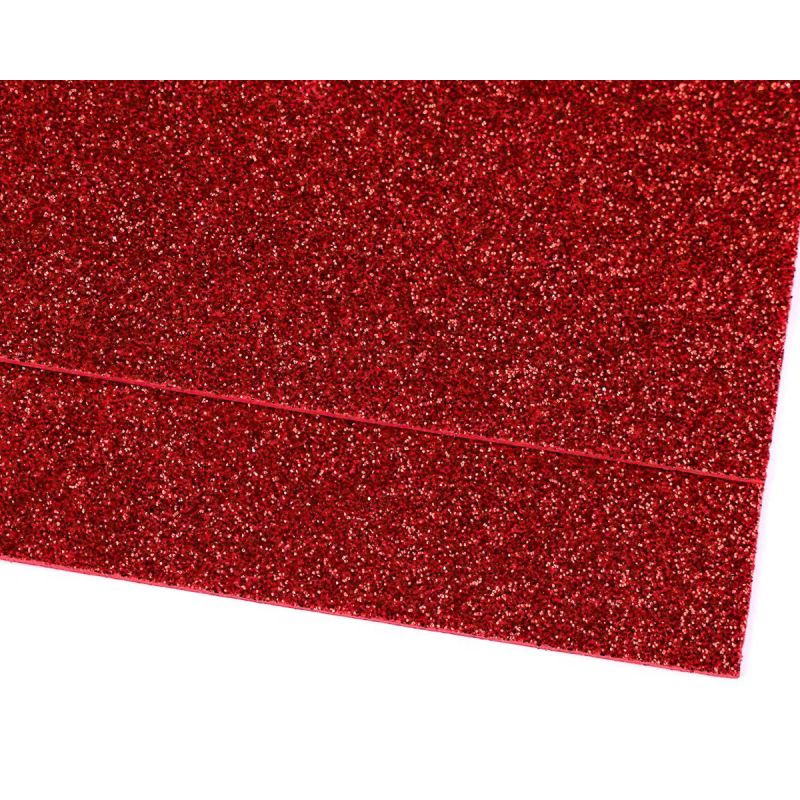 Pěnová guma Moosgummi 20x30cm, 750861 jednobarevná 8 červená, tloušťka 1,9mm, s glitry