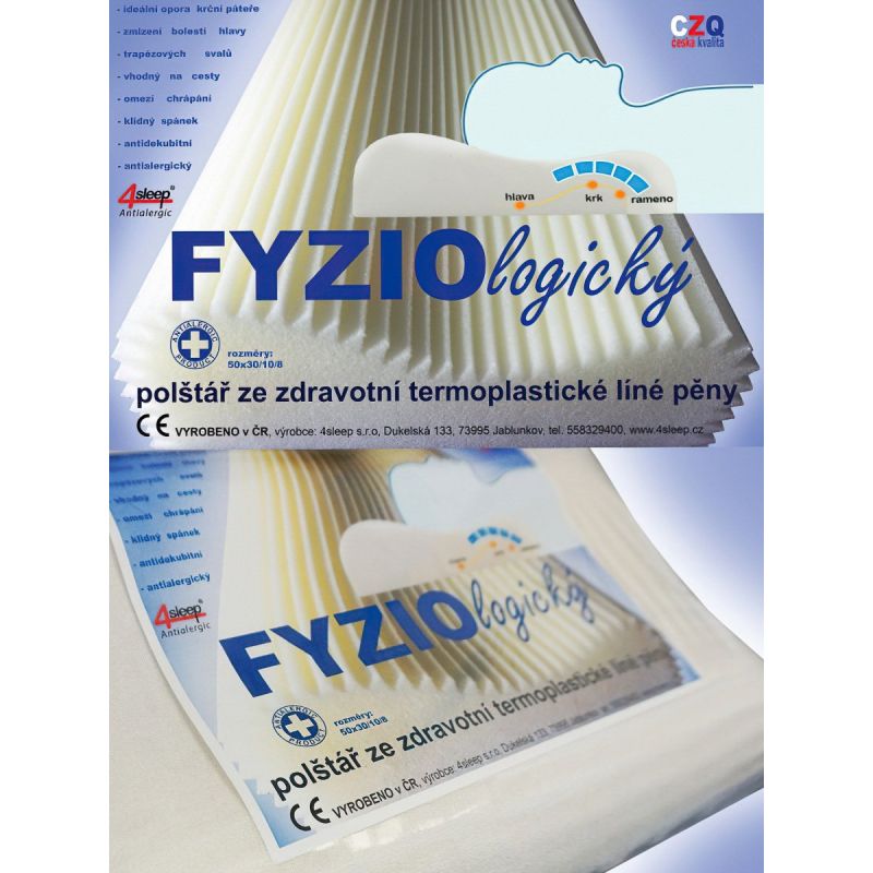 Polštář anatomický FYZIOLOGICKÝ ze zdravotní termoplastické líné pěny, 50x30x10/8cm, se zipem