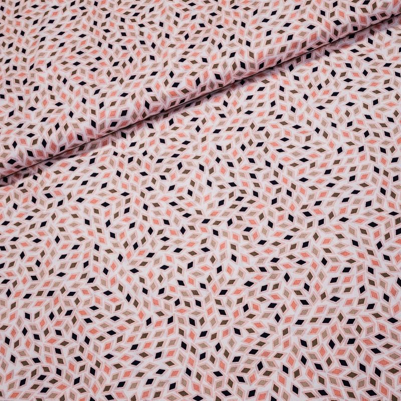 Polyesterový úplet J-2101/2 lososové a béžové střípky, š.150cm (látka v metráži)