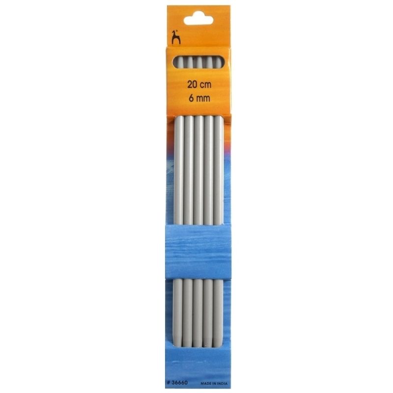 Krátká ponožková jehlice z kvalitního hliníku s povrchovou úpravou zaručující dlouhou životnost v délce 20cm a velikostí 6mm. Balení obsahuje 5 kusů j...
