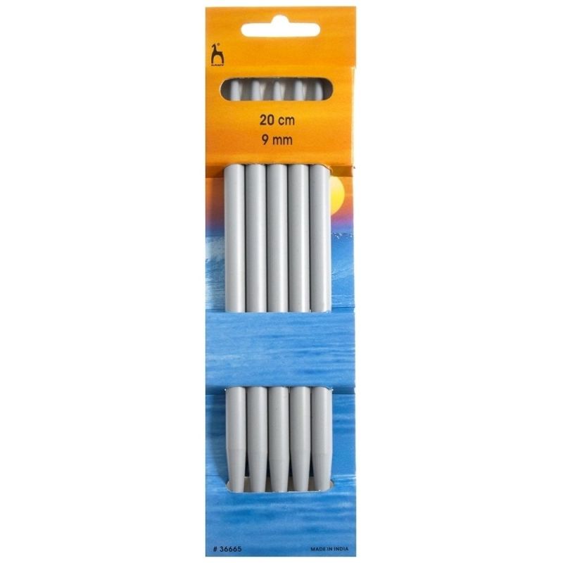 Krátká ponožková jehlice z kvalitního hliníku s povrchovou úpravou zaručující dlouhou životnost v délce 20cm a velikostí 9mm. Balení obsahuje 5 kusů jehlic.