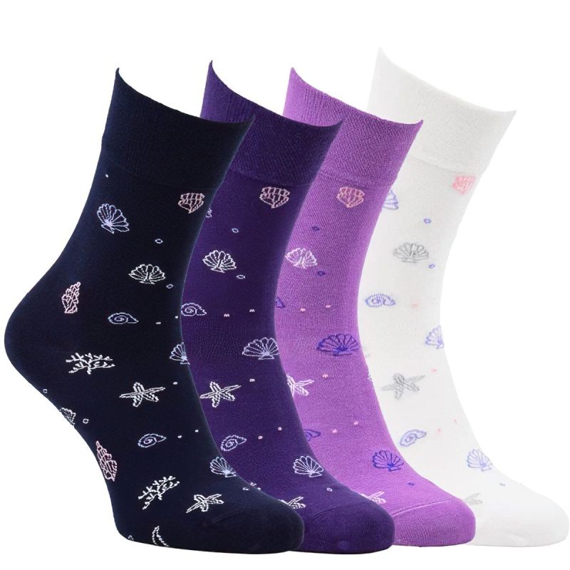 Ponožky zdravotní bambusové 7110040, vzorované, mušle, klasické, bez gumiček, dámské, 4 páry (více velikostí)