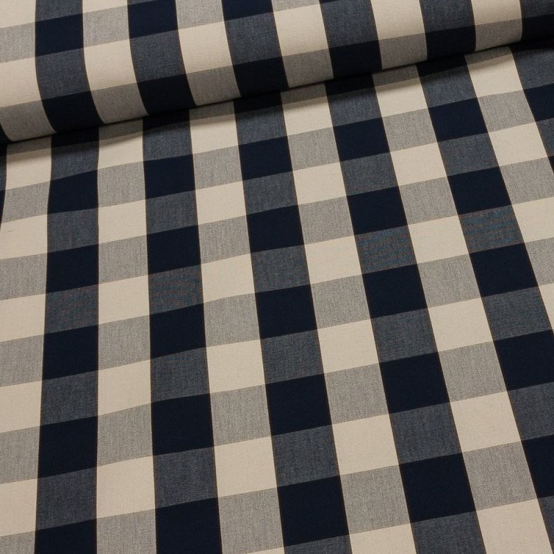 Potahové plátno se vzorem modro-béžové kostky. Látka je v šířce 140 cm, vyrobena ze 100% akrylu (dralonu). Látka na zahradní nábytek, polstry, ubrusy ...