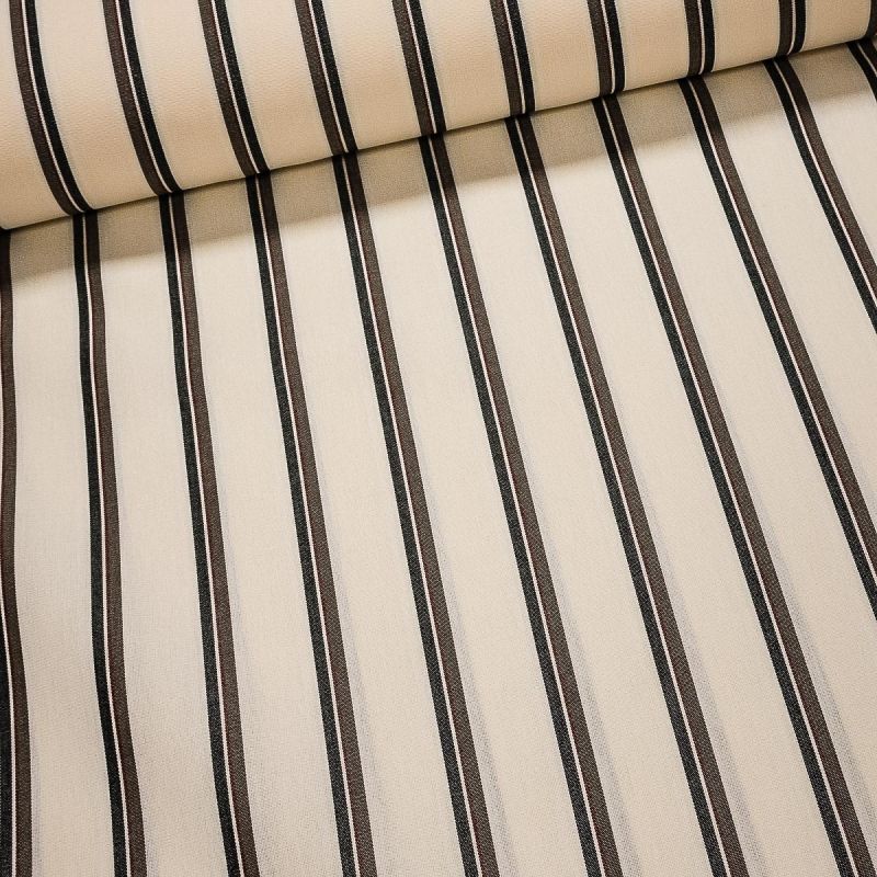 Potahové plátno se vzorem tenkého šedého a vínového proužku na smetanovém podkladu. Látka je v šířce 140 cm, vyrobena ze 100% akrylu (dralonu). Látka na zahradní nábytek, polstry, ubrusy nebo markýzy je z obou stran stejná. Má velmi dobrou pevnost, odolává plísním a díky teflonové úpravě vláken je voděodolná (tekutina se drží určitou dobu na povrchu a lze jednoduše setřít). Dalšími výhodami jsou vysoká stálost na světle, snadné čištění a stálobarevnost.
