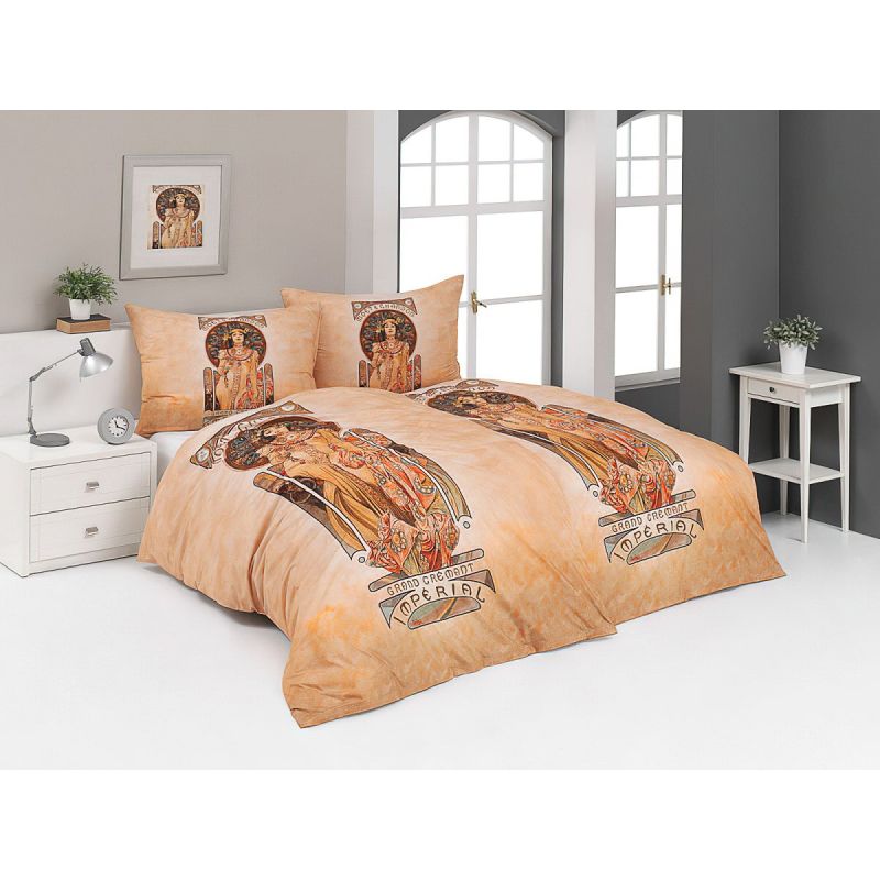 Povlečení Matějovský ALFONS MUCHA MOET, béžové, bavlna hladká digitál, 140x200cm + 70x90cm