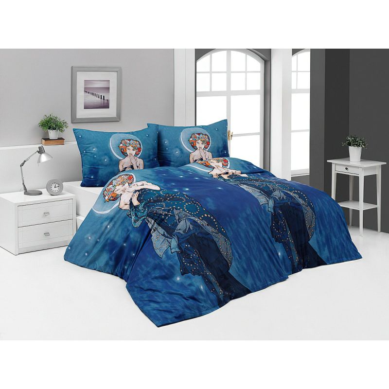 Povlečení Matějovský ALFONS MUCHA MOON, modré, bavlna hladká digitál, 140x200cm + 70x90cm