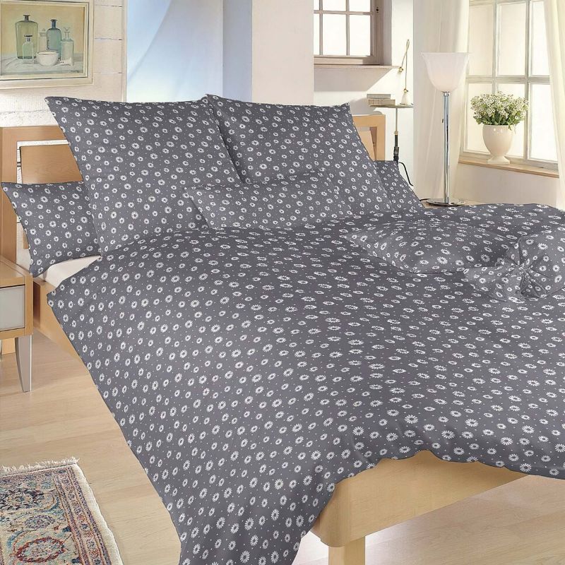 Povlečení ANEŽKA BÍLÁ NA TMAVĚ ŠEDÉM, květinový vzor, bavlna hladká, 140x200cm + 70x90cm
