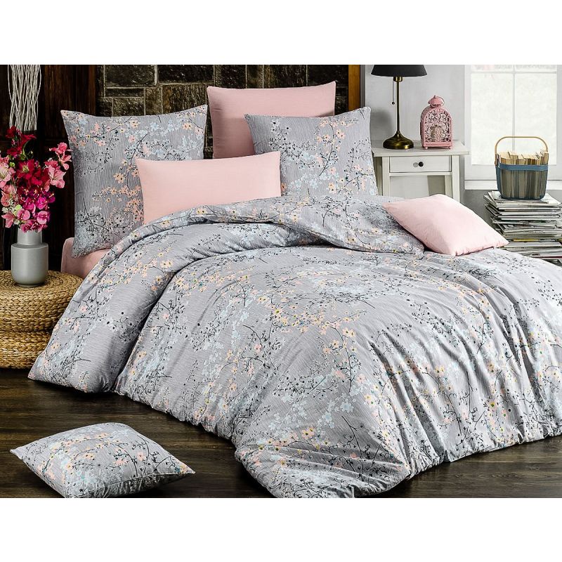 Bavlněné povlečení za dostupnou cenu se vzorem větviček s lososovými květy na šedém podkladu. Povlak na přikrývku má vzor z obou stran stejný. Povlak ...