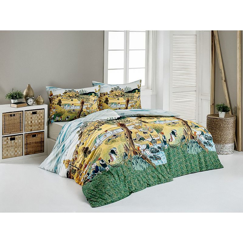 Povlečení Matějovský JOSEF LADA DĚTSKÉ HRY V LÉTĚ, žluto-zelené, bavlna hladká digitál, 140x200cm + 70x90cm