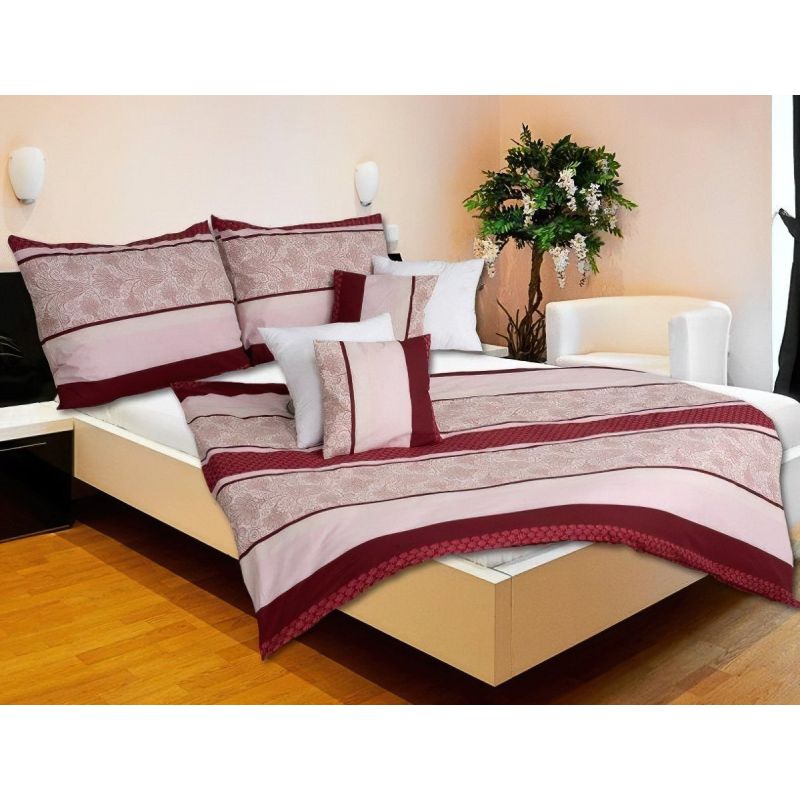 Krepové povlečení se vzorem vínových pruhů a rostlinným vzorem od českého výrobce. Souprava je vyrobena ze 100% bavlny a obsahuje jeden povlak na přikrývku 140 x 200 cm a jeden povlak na polštář 70 x 90 cm. Zapínání na knoflíky.