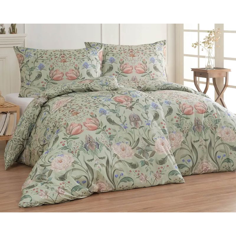 Bavlněné povlečení s květinovým vzorem na světle zeleném podkladu. Povlečení je z obou stran stejné. Souprava je vyrobena ze 100% bavlny a obsahuje povlak na přikrývku 140 x 200 cm a povlak na polštář 70 x 90 cm. Zapínání na ZIP. Vzor je tištěn nejmodernějším digitálním tiskem, který zajišťuje vysoce precizní detail.