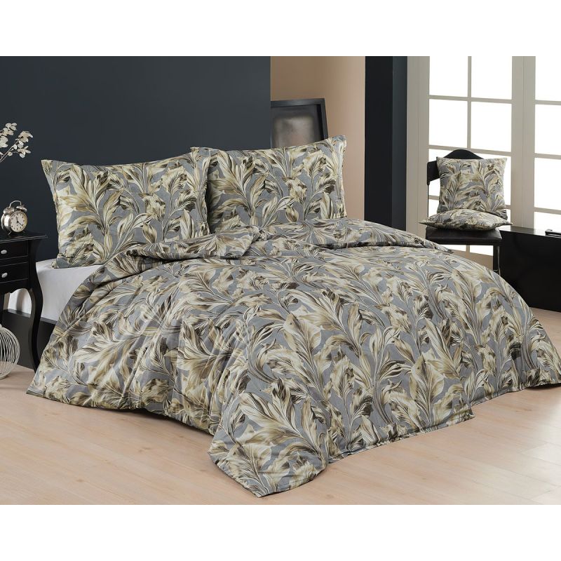 Povlečení Matějovský AMBIENT, florální vzor, béžovo-šedé, bavlněný MAKO satén, 140x200cm + 70x90cm