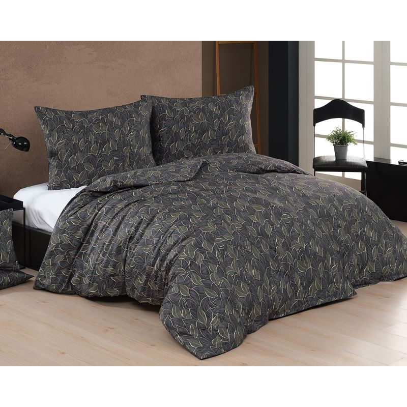 Povlečení Matějovský ELEGANCE, listy, béžovo-tmavě šedé, bavlněný MAKO satén, 140x200cm + 70x90cm