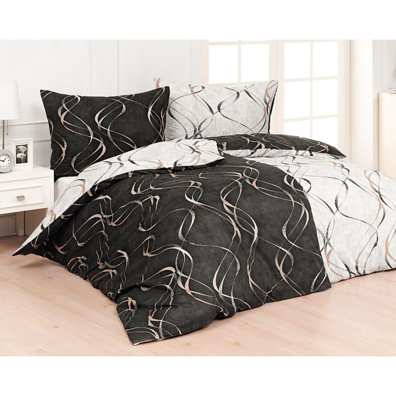 Povlečení Matějovský KINGSTON, šedo-zlaté vlny na černé / světle šedé, 140x200cm + 70x90cm, (více materiálů)