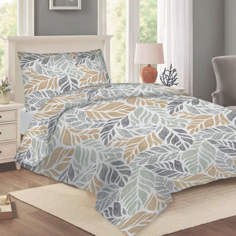 Povlečení NELA 34 SÁRA, šedo-béžové listy, bavlna hladká, 140x200cm + 70x90cm