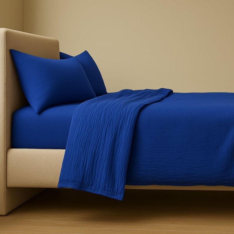 Povlečení Prem MUŠELÍN PREMIUM MODRÉ, jednobarevné, modré, mušelín, 140x200cm + 70x90cm