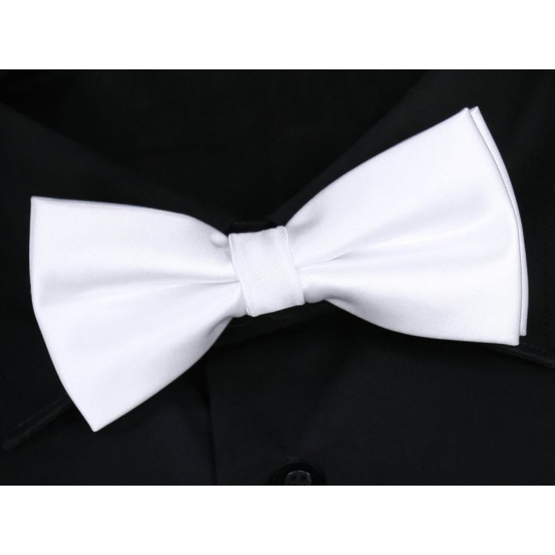 Elegantní, ručně šitý pánský motýlek v klasické bílé barvě, vyrobený ze 100% polyesteru. Motýlek je již uvázaný, zapínání na sponu. Šířka motýlku v nejširším místě je 11,5 cm a vysoký 5,5 cm v nejdelším místě. Bílý motýlek vhodný na společenské události označené jako "White Tie" nebo "Ultra Formal", kde je smoking nebo frak nutností.