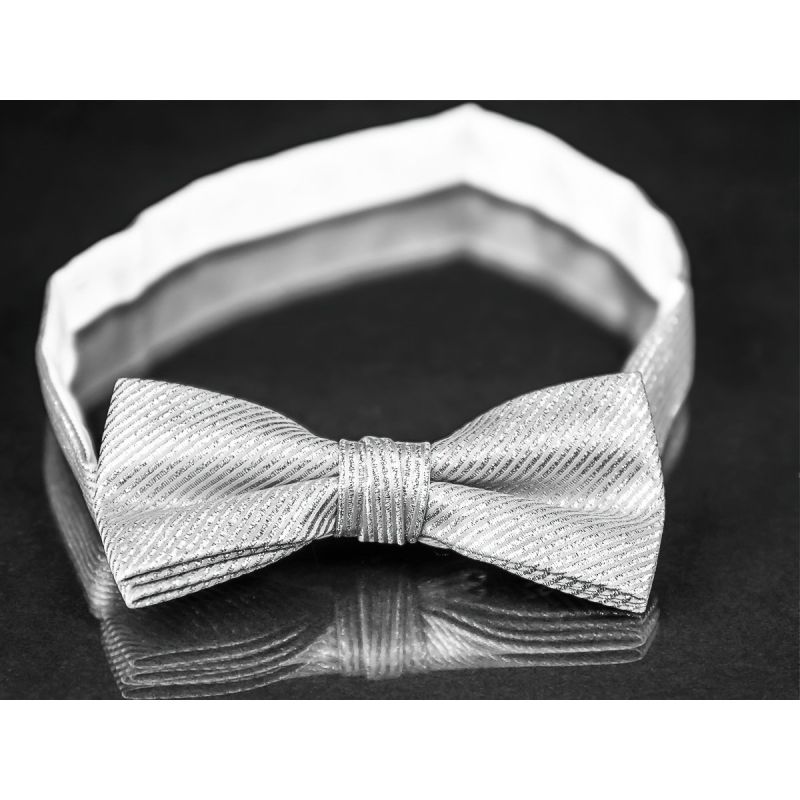 Pánský elegantní motýlek AMJ ve stříbrné barvě se stříbrnými proužky.