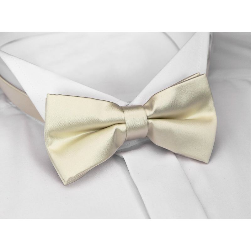 Elegantní, ručně šitý pánský motýlek smetanové barvy, vyrobený ze 100% polyesteru. Motýlek je již uvázaný, zapínání na sponu. Šířka motýlku v nejširším místě je 11,5 cm a vysoký 5,5 cm v nejdelším místě. Díky své univerzální barvě je tento motýlek vhodný na taneční a jiné společenské události označené jako "Black Tie" nebo "Ultra Formal", kde je smoking nebo frak nutností.
