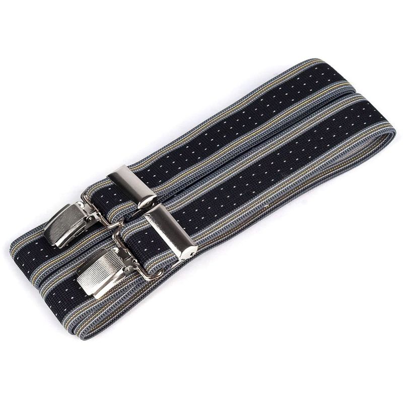 Pánské šle černé s šedými proužky a drobnými bílými tečkami s nastavitelnou délkou 125 cm, šíře 3 cm v provedení ve tvaru písmene "X" s uchycením na ž...