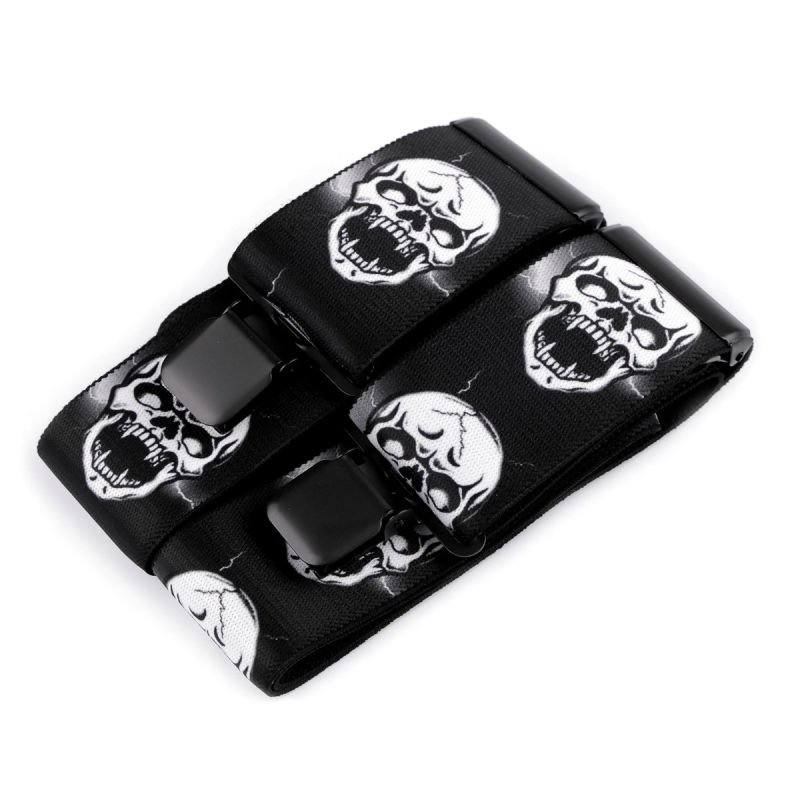 Pánské šle s motorkářským vzorem lebek v černé barvě jsou určeny pro všechny motorkáře a nebo jako stylový dárek. Šle jsou s nastavitelnou délkou 120 cm, šíře 5 cm v provedení ve tvaru písmene "Y" s uchycením na žabky.