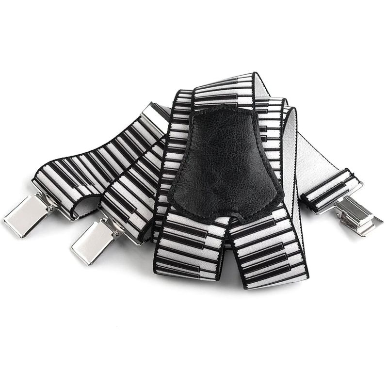 Unisexové šle s hudebním vzorem piána - klaviatury v černo-bílém provedení jsou určeny pro všechny hudebníky a hudební nadšence nebo jako stylový dáre...
