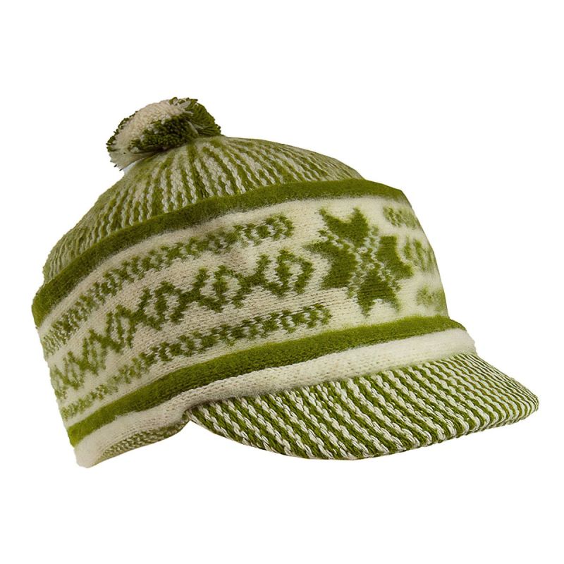 Pánská vlněná čepice od tradičního českého výroce TONAK s klasickým vlnitým vzorem, tzv. zmijovka v žlutozelené-smetanové barvě s kšiltem a ozdobnou b...