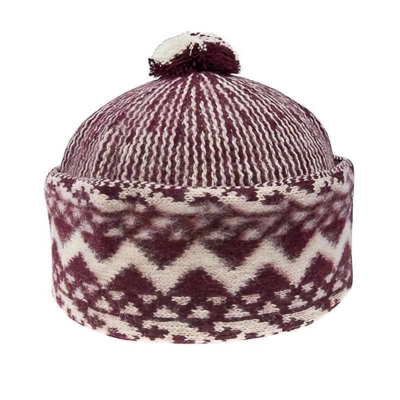 Pánská vlněná čepice od tradičního českého výroce TONAK s klasickým vlnitým vzorem, tzv. zmijovka v bordó-smetanové barvě s ozdobnou bambulí a ohnutým...