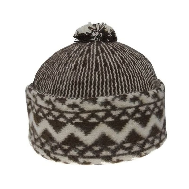 Pánská vlněná čepice od tradičního českého výroce TONAK s klasickým vlnitým vzorem, tzv. zmijovka v hnědobílé barvě s ozdobnou bambulí a ohnutým lemem...