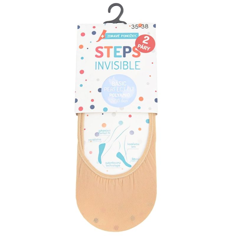 Steps dámské extra jemné tvarované polyamidové ťapky natur v tělové béžové barvě. Dámské pavučinkové neviditelné hladké polyamidové ponožky do balerýnek STEPS. Tyto extra jemné a tenké ťapky jsou velmi praktické pro horké letní dny, přičemž nejsou téměř vidět! 2x40DEN. Využijete je do balerín, nízkých bot, sandálů. Cena je uvedena za balení obsahující 1 pár ponožek.