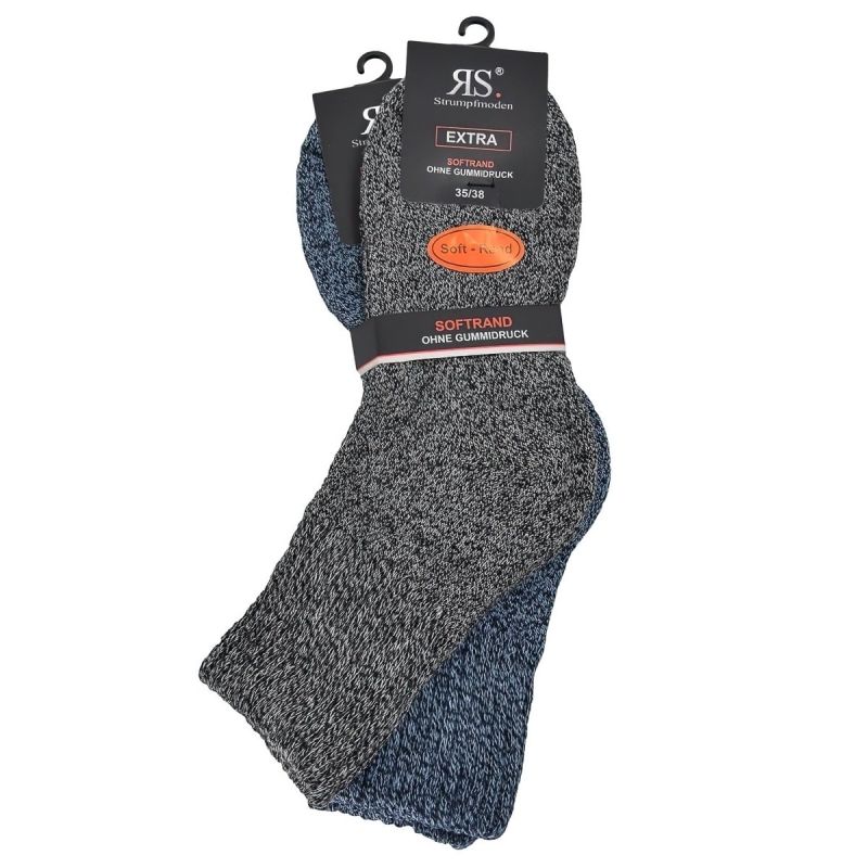 Dámské zdravotní teplé bavlněné (78% bavlna, 19% polyamid, 3% elastan) ponožky se melírovaným designem v šedé a modré barvě. Pohodlí zajišťuje plochý šev na špici (ruční řetízkování) a trvanlivost ponožek pak jemné froté pletení uvnitř ponožky. RS bavlněné ponožky se příjemně nosí a nesjíždí, jsou dostatečně roztažné a příjemně se nosí a jsou zakončeny volným a skvěle roztažným lemem Cena je uvedena za balení obsahující 2 páry ponožek.