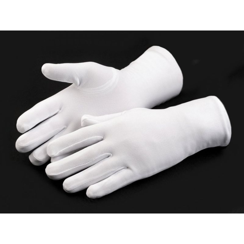 Módní pánské jednobarevné rukavičky v bílé barvě. Rukavičky jsou vhodné jak na svatbu, tak do tanečních nebo na společenskou událost. Tyto pánské rukavice mají univerzální velikost. Jsou široké 8 cm, dlouhé 25-27 cm volně položené. Díky použití kvalitního materiálu (polyesteru a elastanu) Vám bude v rukavičkách příjemně. Můžete je prát na 40°C běžným pracím programem, lze je sušit v sušičce.