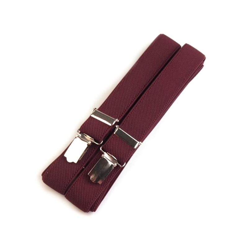 Pánské šle v barvě bordó s nastavitelnou délkou 125 cm, šíře 2,5 cm v provedení ve tvaru písmene "X" s uchycením na žabky.