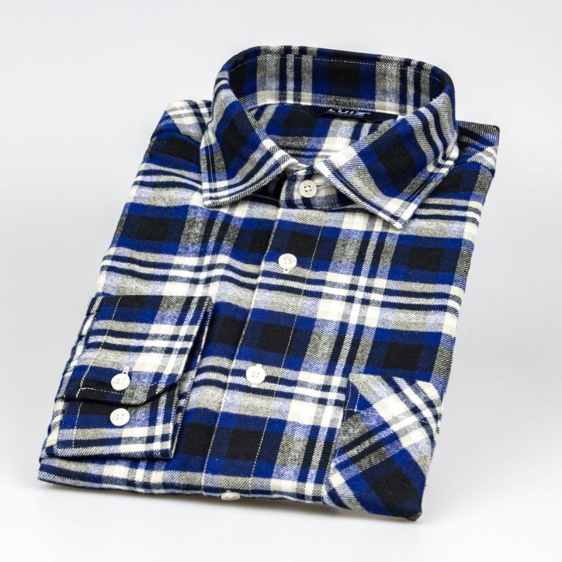 Pánská košile LUIZ BRUNO 176 flanelová, modro-šedé káro, dlouhý rukáv, regular fit
