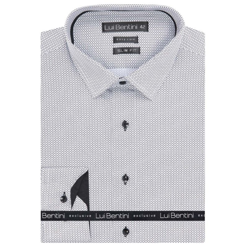 Luxusní pánská košile Lui Bentini s dlouhým rukávem v projmutém (slim) střihu. Pánská košile Lui Bentini v bílé barvě se vzorem šedých půlených puntík...
