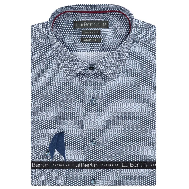 Luxusní pánská košile Lui Bentini s dlouhým rukávem v projmutém (slim) střihu. Pánská košile Lui Bentini v modré barvě se vzorem bílých okrasných punt...