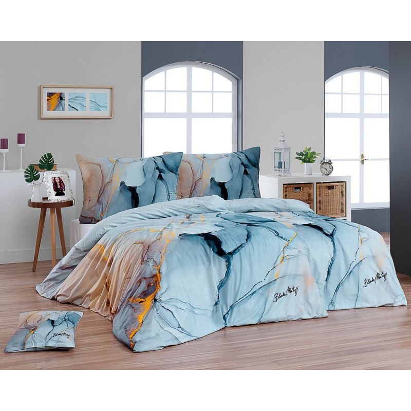 Sada 2 ks povlečení BLANKA MATRAGI - TRIP, světle modré motivy, bavlněný MAKO satén, digitál, 140x200cm + 70x90cm