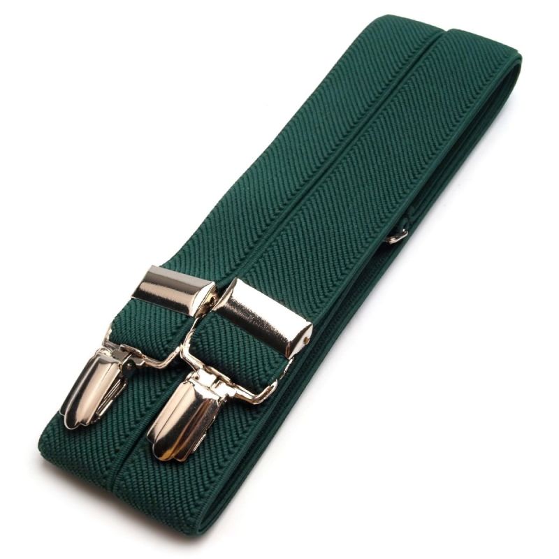 Pánské šle v lesní zelené barvě s nastavitelnou délkou 125 cm, šíře 2,5 cm v provedení ve tvaru písmene "X" s uchycením na žabky.